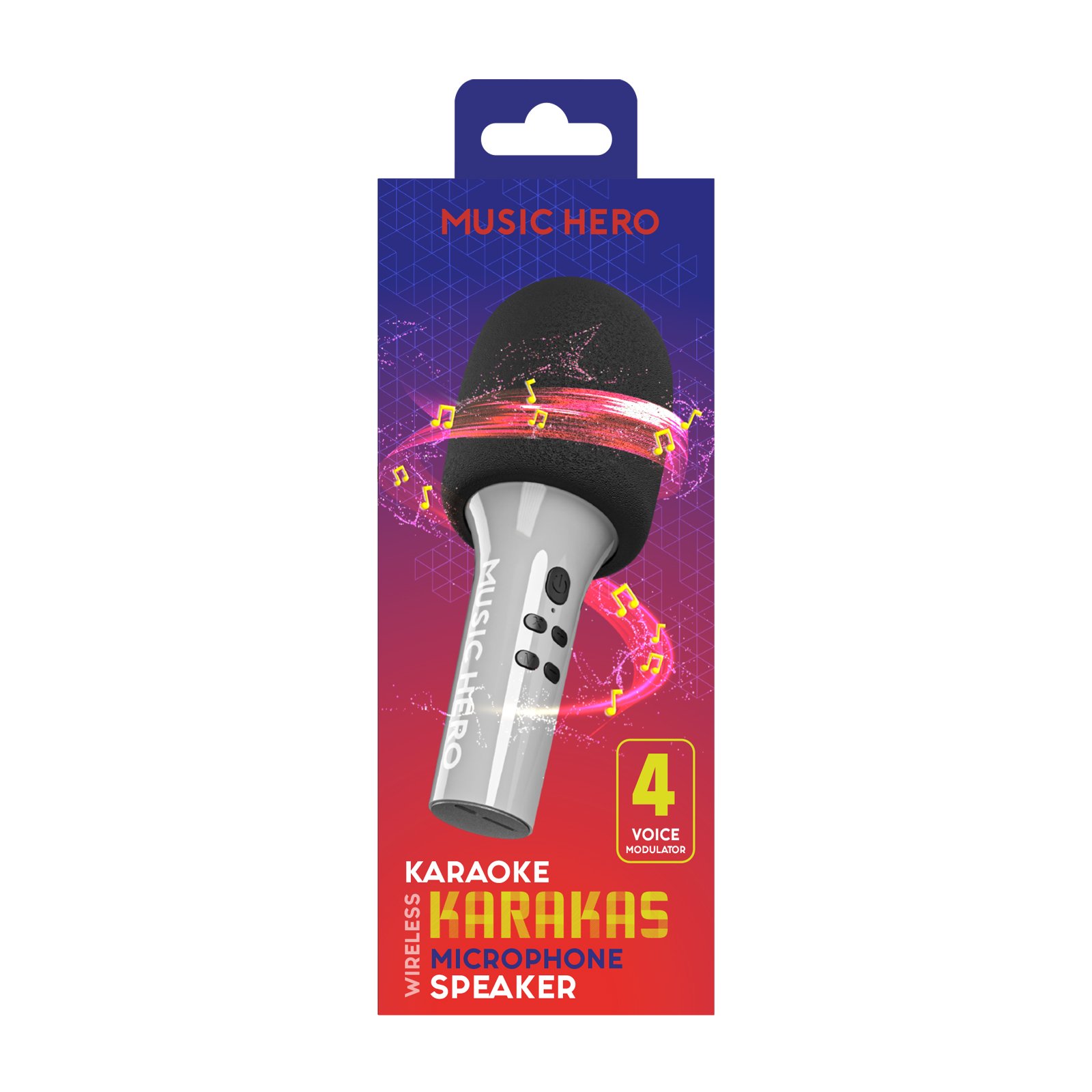 There are several buttons on the microphone that allow you to pause/play a song, turn the microphone off/on, increase/decrease the volume, select a voice effect and change voice modulation.
