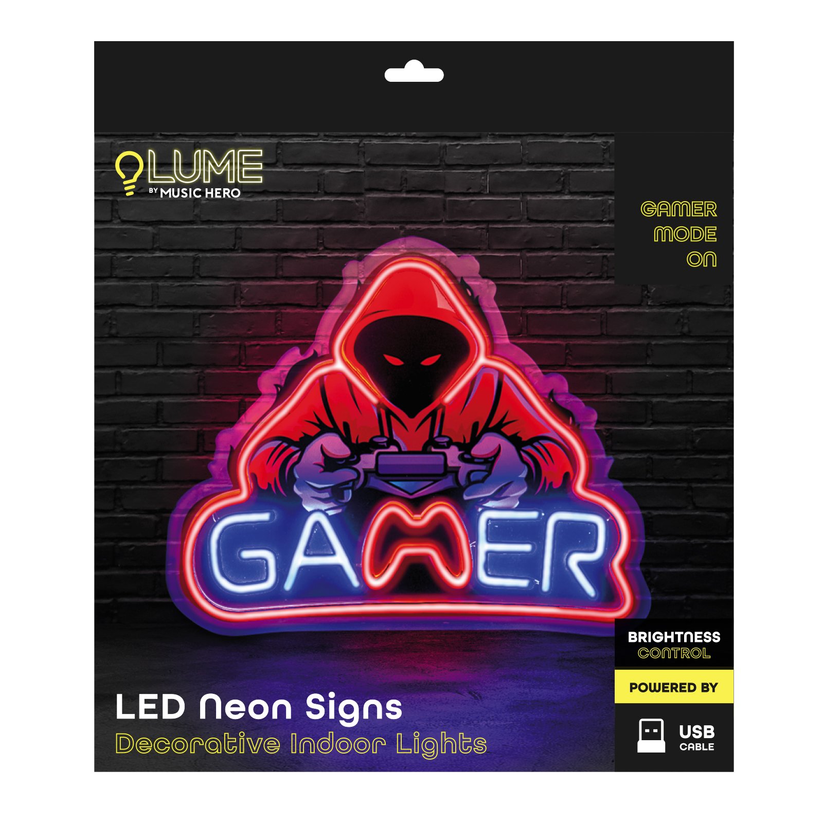 Gamer-shaped design Neon effect Dimensions: 28×34 cm Low consumption USB Easy to hang