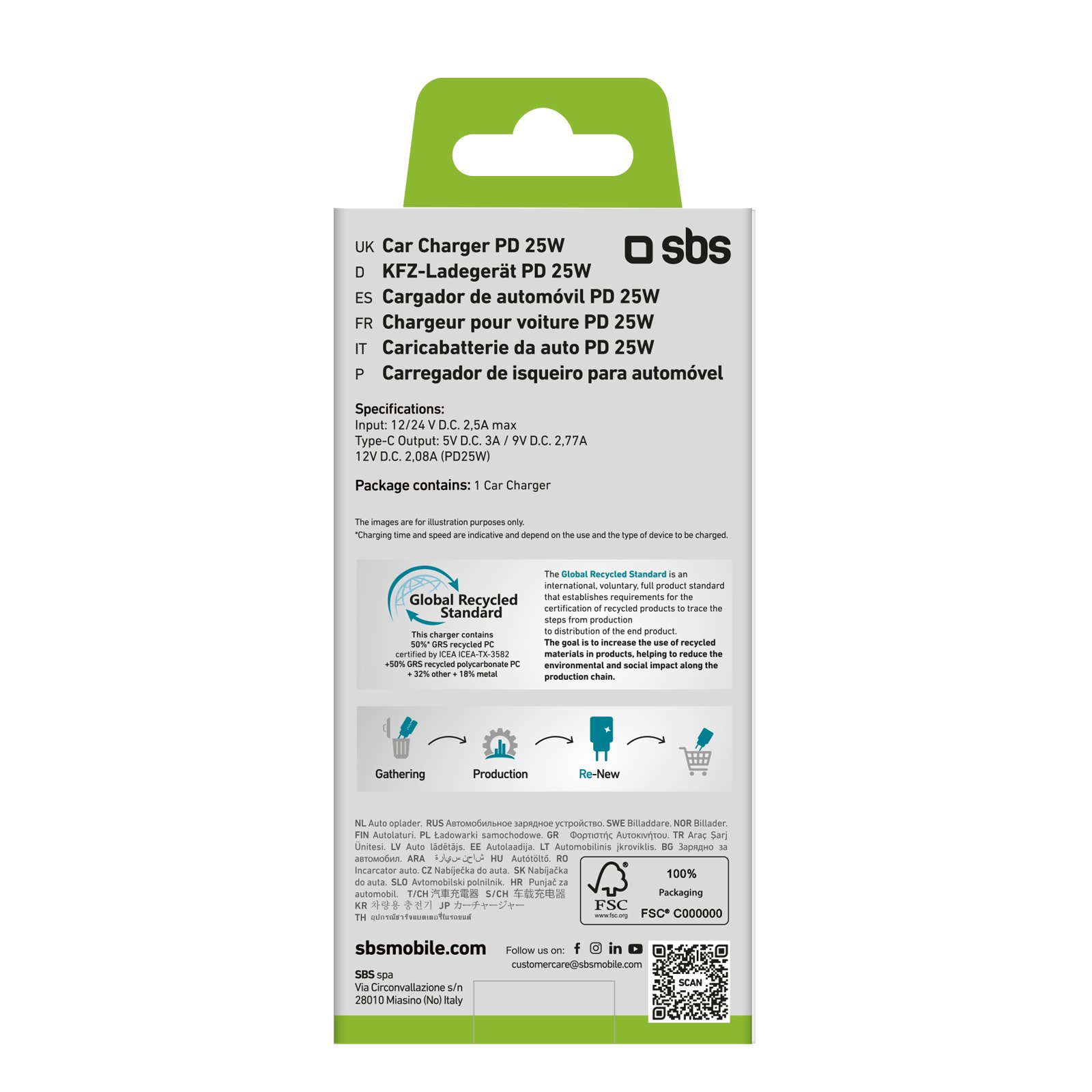 Made with GRS certified recycled plastic for a reduced carbon footprint Elegant and minimalist design with refined and distinctive details Designed to charge smartphones, tablets, e-readers, speakers and wireless headphones in the car USB-C port charges safely and quickly at 25 Watts Compact and easy to carry for using in different cars
