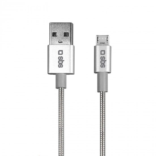 SBS Flexible Aluminum Charging Cable Micro,USB Length: 1.5m Colour: Grey