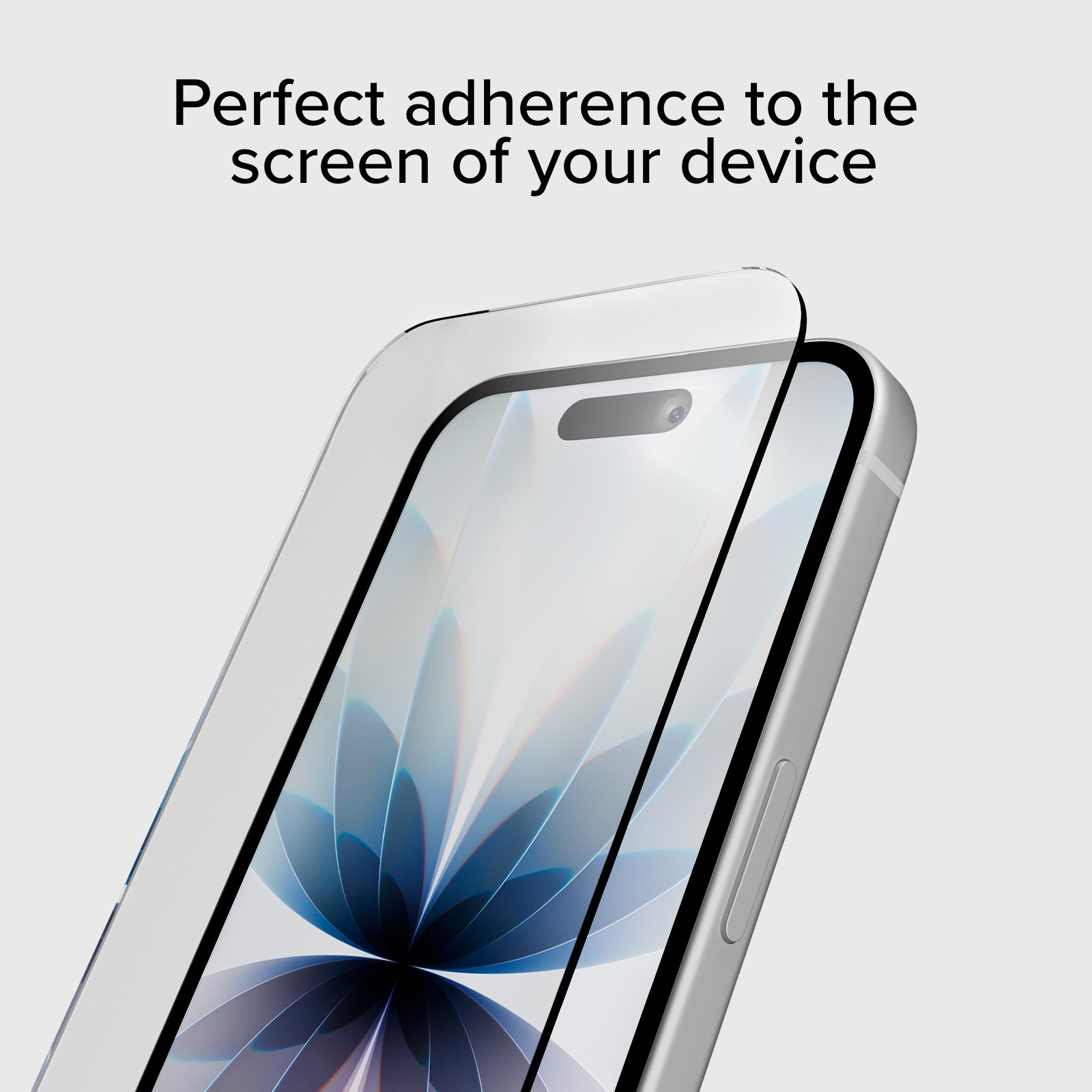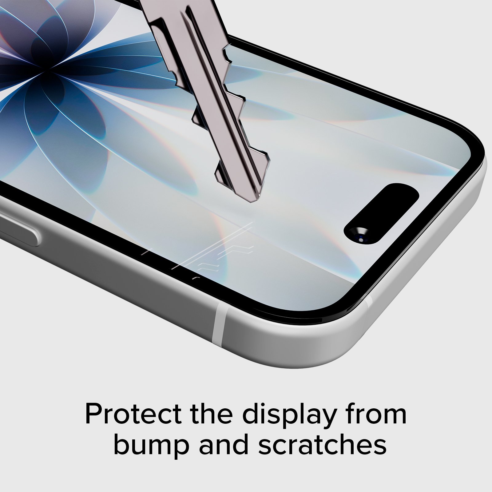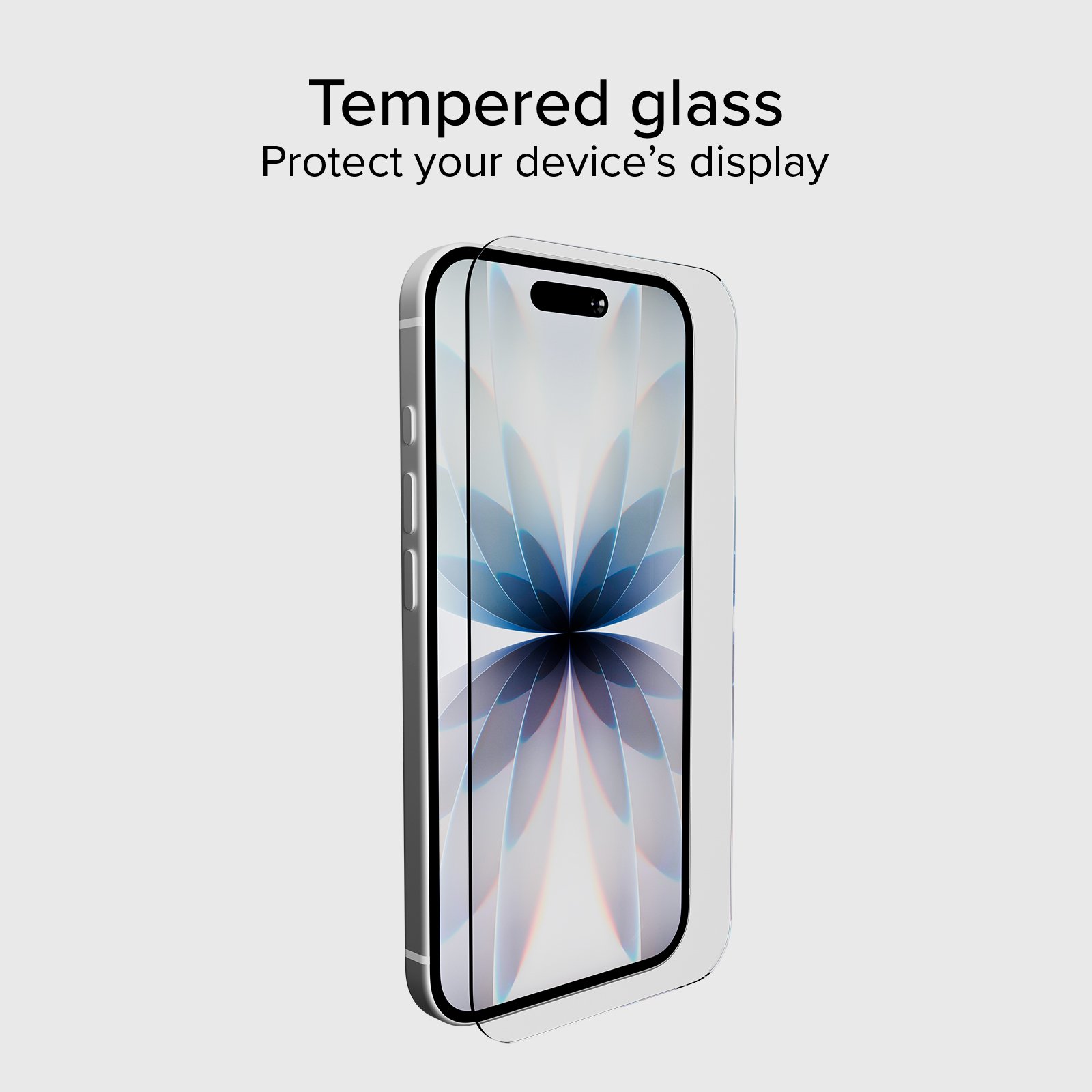 A screen protector for iPhone 17/17 Pro/16 Pro phones that features shock-resistant tempered glass